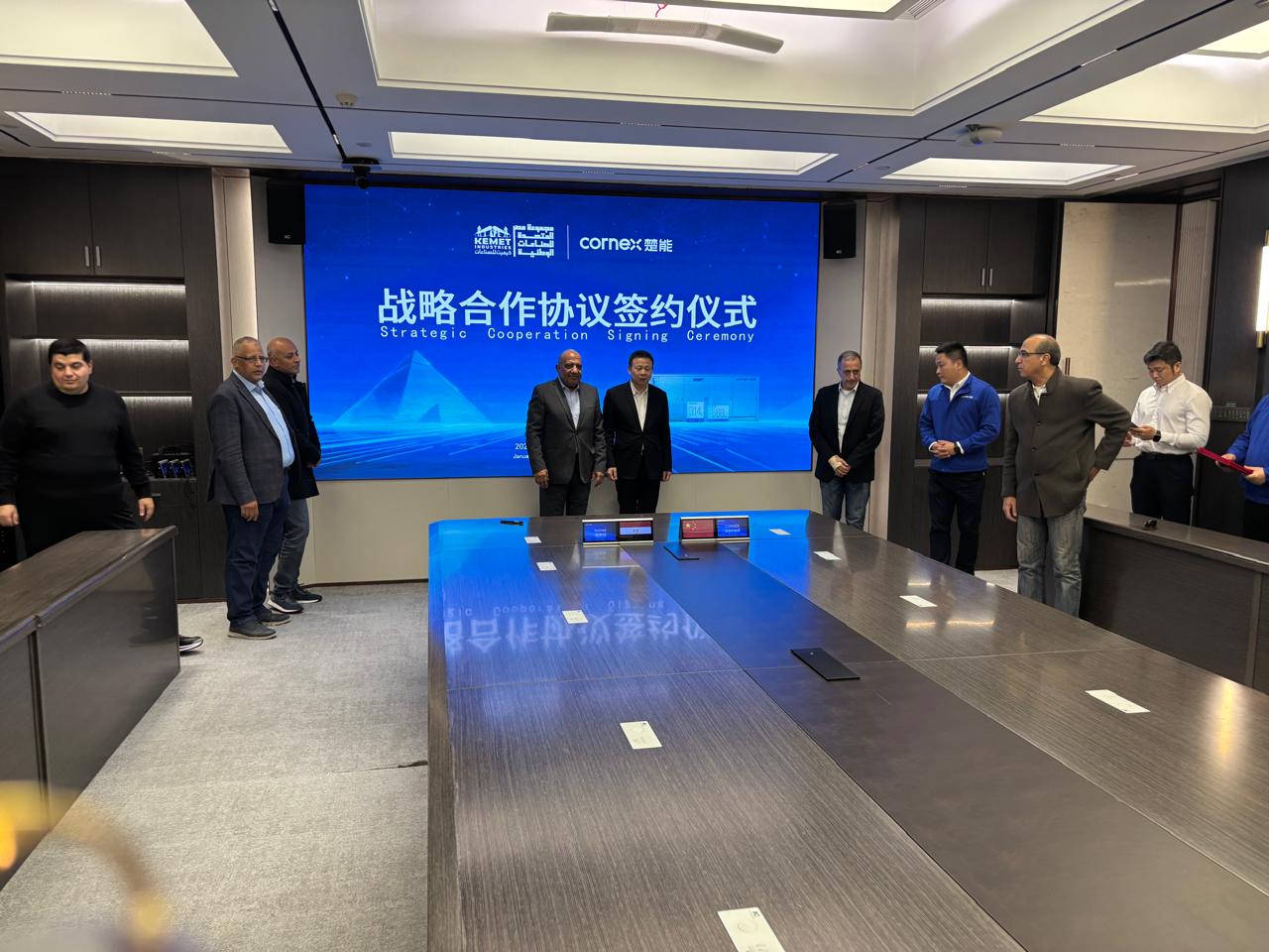 عقب الاجتماع، شهد الدكتور محمود عصمت مراسم توقيع اتفاقية التعاون الاستراتيجي لتوطين صناعة خلايا بطاريات تخزين الطاقة وإقامة مصنع متكامل لتصنيع البطاريات اعتمادا على مواد خام ومستلزمات صناعة محلية، بين شركة كيميت المصرية ومجموعة شركات كرنكس الصينية، وقام بالتوقيع عن شركة كيميت المهندس أحمد العبد رئيس الشركة، وعن الشركة الصينية، داى ديمنج رئيس الشركة، ويشمل الاتفاق انشاء مصنع لانتاج خلايا بطاريات تخزين الطاقة الكهربائية، ونقل وتوطين تكنولوجيا التصنيع التى تمتلكها الشركة بداية من المواد الخام والصناعات التحويلية اللازمة واستخدامها فى تصنيع البطاريات، اعتمادا على الخامات المحلية، وتبلغ الطاقة الانتاجية 5000 ميجاوات ساعة سنويا ، بإجمالي استثمارات تبلغ 200 مليون دولار.